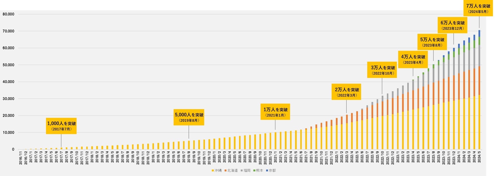 累積登録会員数の推移(2024年5月31日現在) ※五拠点合計