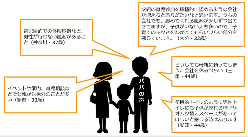 ■父親として育児をする上での社会に対する改善要望について、パパたちのリアルなコメントをご紹介