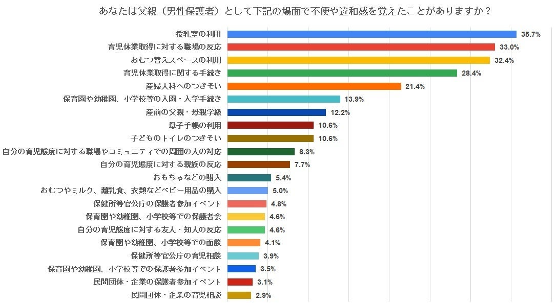 男性が子育て中に感じる不便の1位は「授乳室の利用」、2位は「育休取得に対する職場の反応」”ママだけ子育て”前提の設備や社会意識に対する課題が浮き彫りに