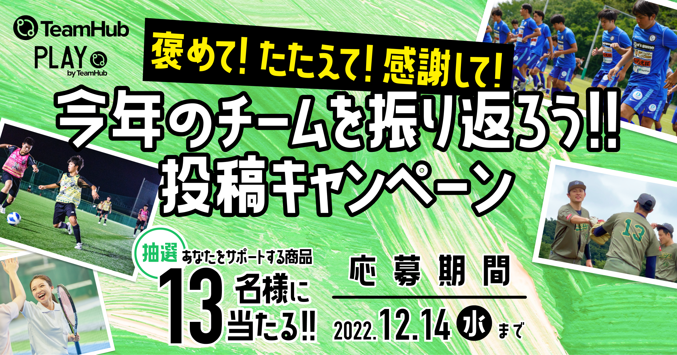 【褒め讃えるエピソード大募集】登録チーム数30万突破!スポーツアプリTeamHub、今年1年を振り返って褒め讃えあう投稿キャンペーンをスタート