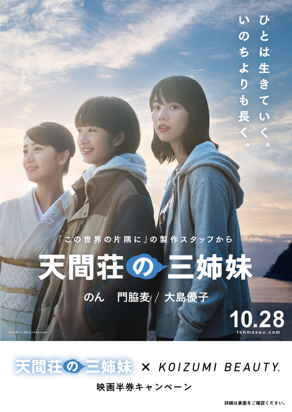 10月28日公開「天間荘の三姉妹」鑑賞チケット半券を撮影し、キャンペーン応募フォームからご応募いただいた方の中から抽選で9名様に、KOIZUMI BEAUTY商品をプレゼント!