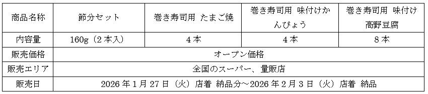 カネテツでは、2026年の節分に向けて、恵方巻づくりを手軽に楽しめる商品や、節分らしいモチーフを取り入れた期間限定商品を展開します。