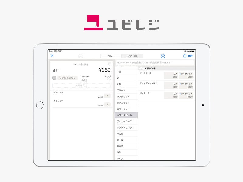 1.「ユビレジ」:タブレットPOSレジ「飲食関係者が選ぶ、最も使いやすいと思うタブレットPOSレジNo1」
