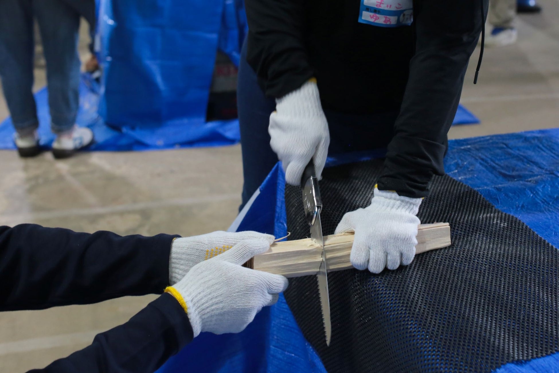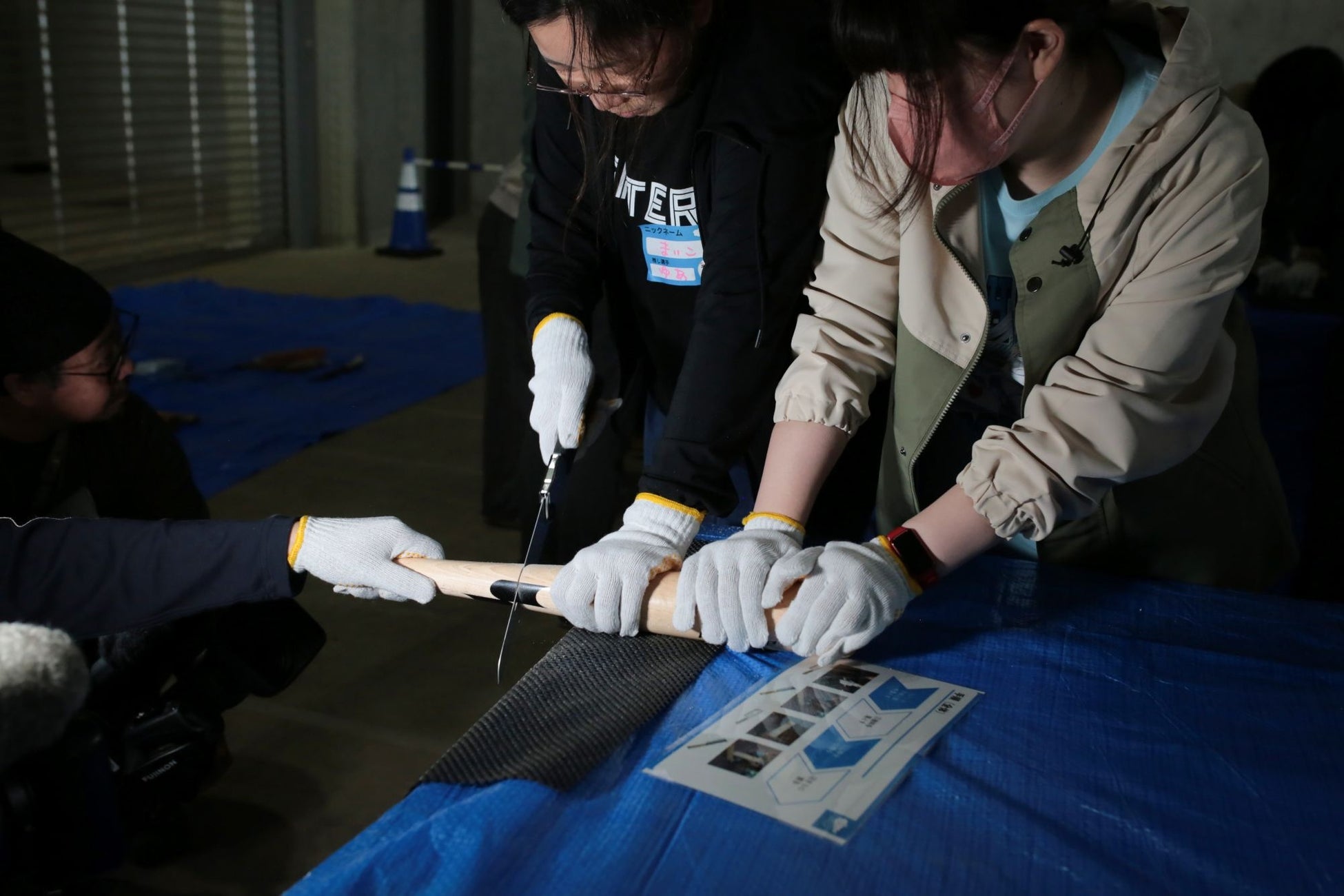 ①ファイターズファンと一緒に!バットを使いやすくするための加工作業を実施
