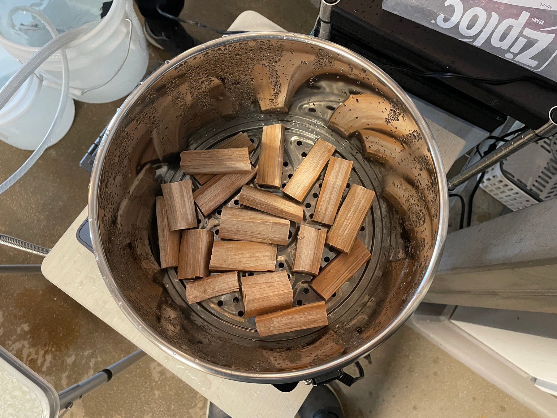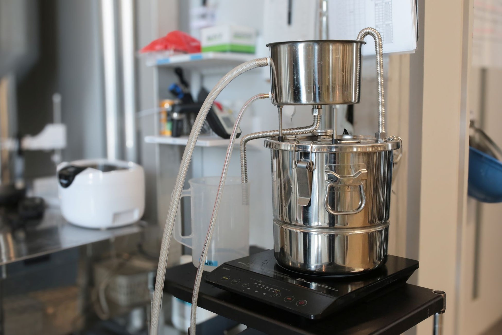 加工した木材から水蒸気蒸留を用いて「芳香蒸留水」を取り出して、ビールに添加しています。これにより、バットに使用される木材は香りが強くはないものの、効率的に香りを抽出することができます。