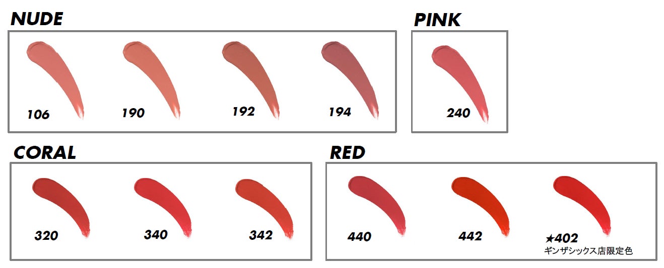 色数 :全10色+ギンザシックス店限定1色(402)