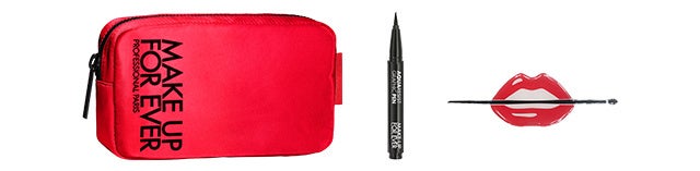 <プレゼント内容>限定ポーチ+アクアレジスト グラフィックペン ミニサイズ +メイクアップフォーエバー リップロゴシール