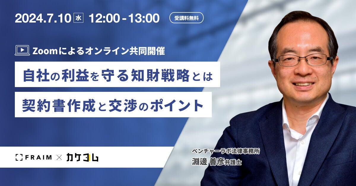 【カケコム×FRAIM|共催セミナー】知財トラブルの事例から学ぶ!知財保護に関する法的悩み解決に向け、共催セミナーを開催