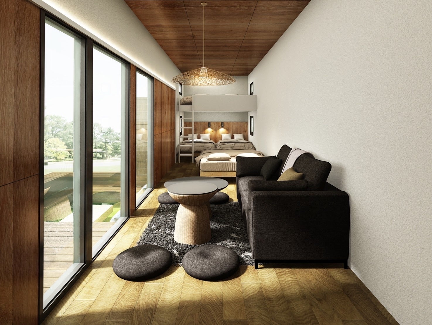 インテリアデザインはブランドやコンセプトの実現において最重要でありながら、デザインの知見やトレンドなど幅広い知識が必要とされ、尚且つ、工数も莫大となります。Dot Homesは施設のコンセプトを実現するデザインのノウハウがあり、専門のチームが担当をします。今回は、自社で運営している「Dot Glampingアシズリテルメ」の事例をもとにご提案し、トータルサポートをいたしました。