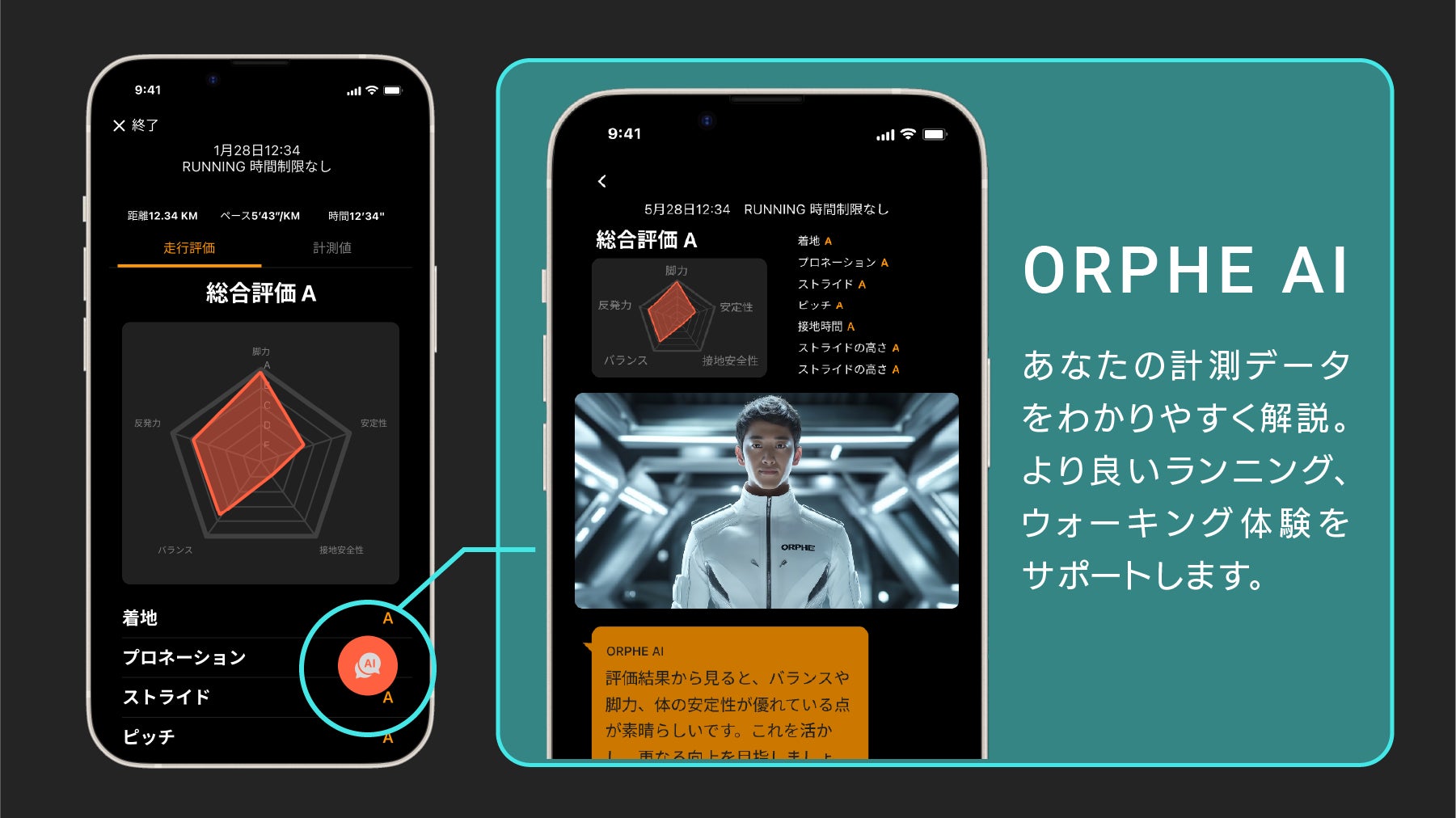 ランナーを進化させるアプリ「ORPHE TRACK」に、ウォーキング計測モードを追加。さらに、計測結果をもとにフィードバックを行うAI機能を搭載しました。
