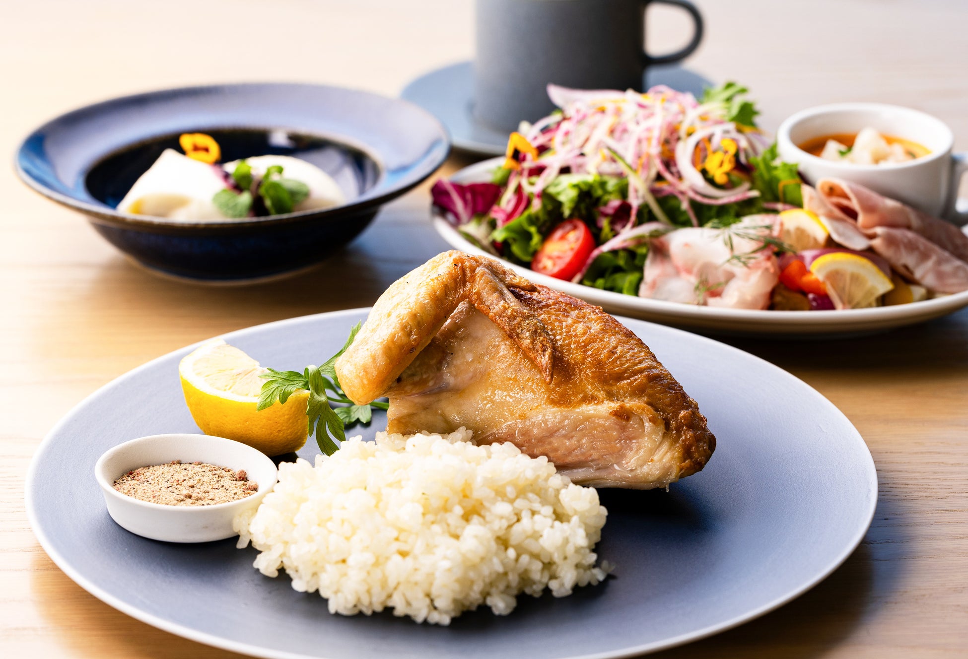 鶏の味を愉しめるよう塩のみでシンプルに調理し、中はしっとりジューシー、皮はパリパリのココリコ名物です。