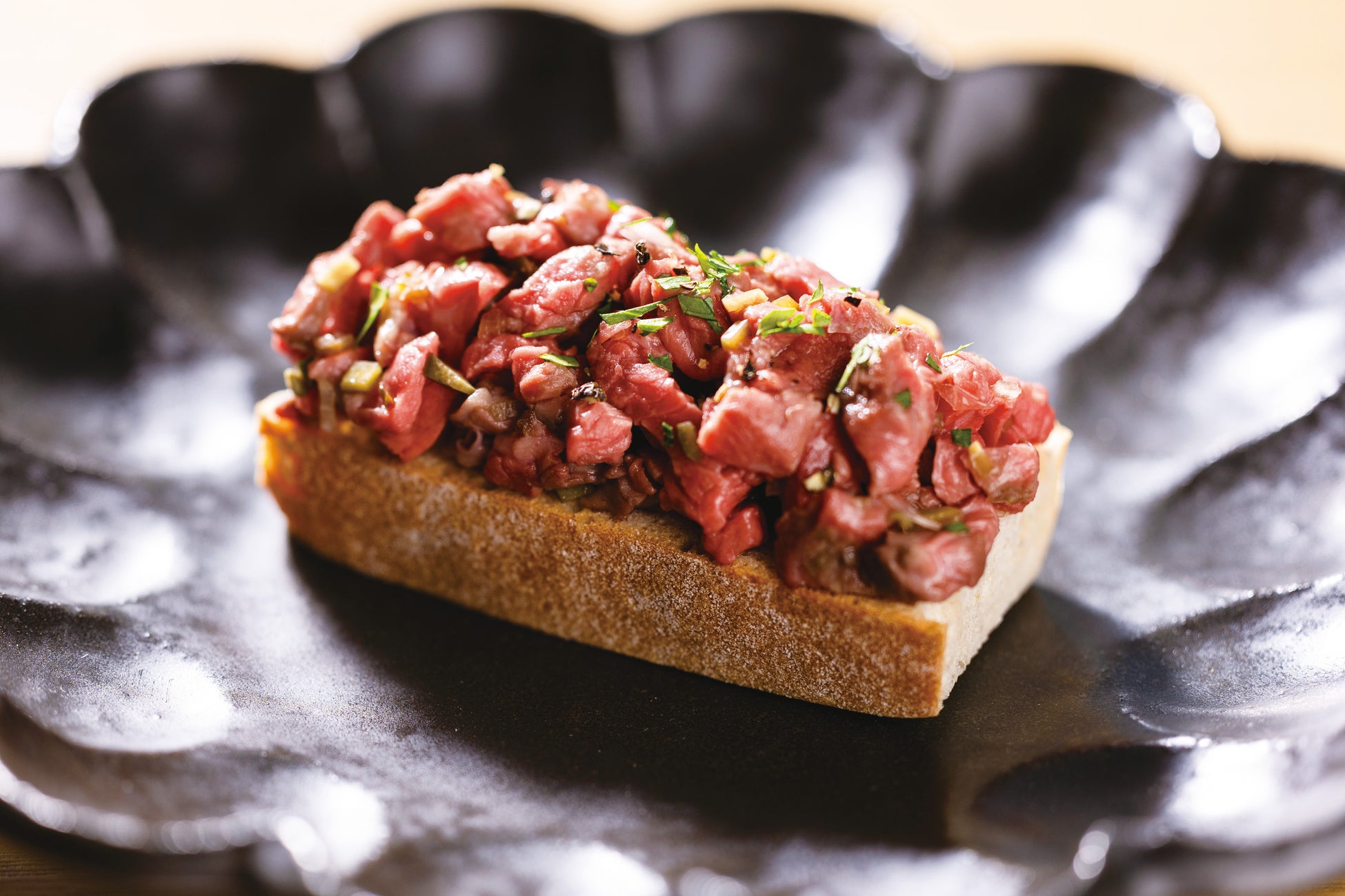 岡山県産「備前牛」を低温調理したタルタルのブルスケッタ