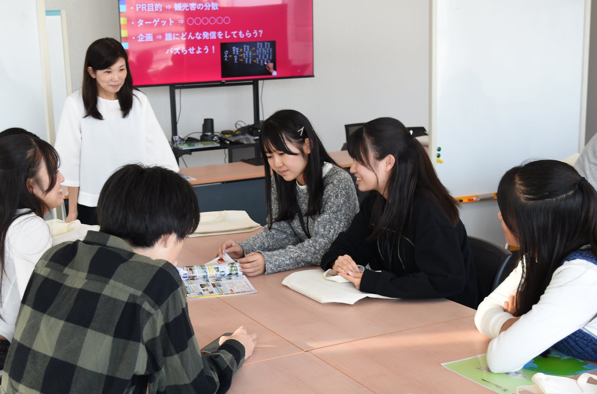 グループ内で観光広告を取り扱うデイリー・インフォメーションの社員が講師となり、生徒たちの地元である福岡県の観光課題を「広告」を用いてどう解決するのか考えるグループワークを行い、最後に発表してもらいました。参加した生徒たちからは、