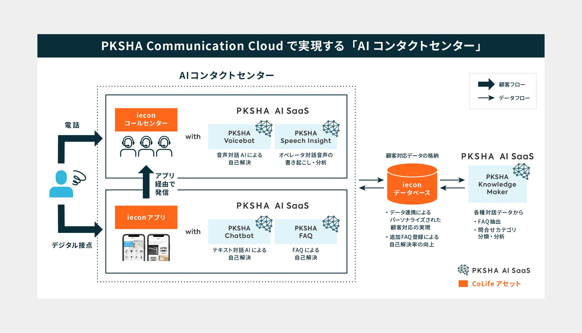 株式会社PKSHA Technology(本社:東京都文京区、代表取締役:上野山 勝也、以下PKSHA)は、グループ会社である株式会社PKSHA Communication(本社:東京都渋谷区、代表取締役:佐藤 哲也)が、株式会社CoLife(本社:東京都中央区、 代表取締役社長 池内順平 、以下CoLife)と提携し、業務の総合的なDX推進を目指し、家ナカマーケットプレイス「iecon」のコンタクトセンターに「PKSHA Communication Cloud(※1)」を導入することになりましたので、お知らせします。PKSHA Communicationは多様なAI SaaS製品ラインナップにより、ユーザーとAIソフトウエアが相互に関わり合いながら共に進化していく新たな関係性を実現し、企業のDX推進を支援します。