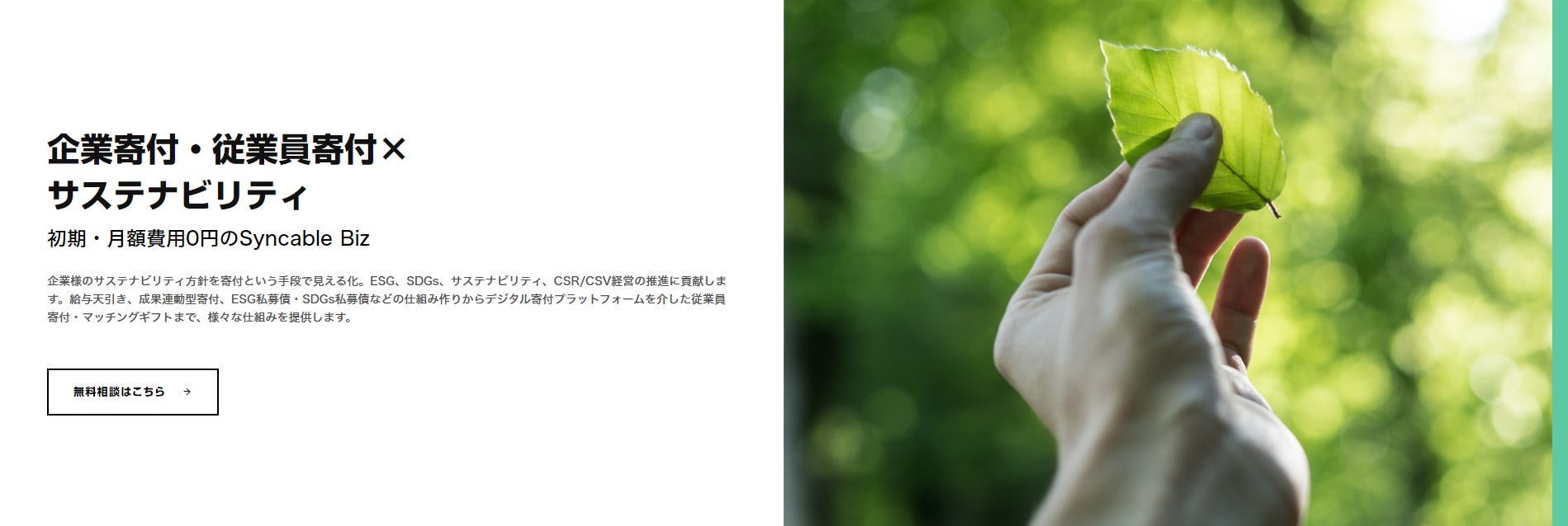 "企業寄付・従業員寄付×サステナビリティ"初期・月額費用0円の『Syncable Biz』