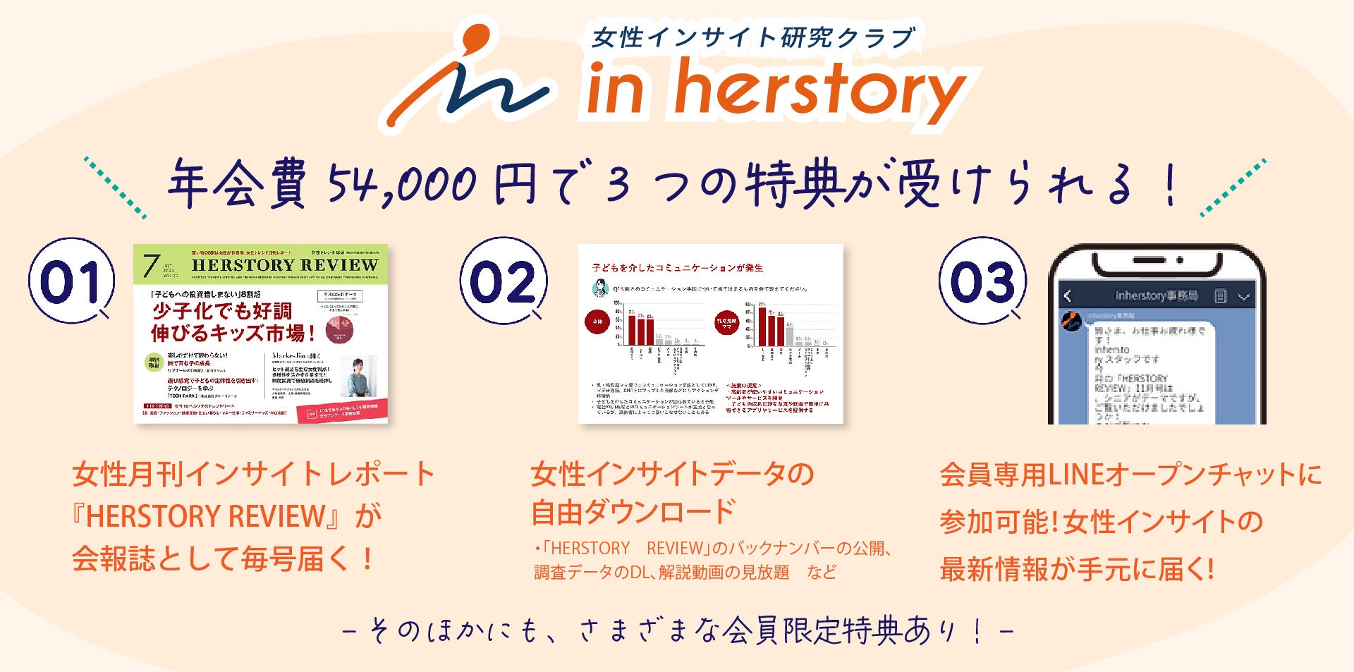 近年、女性の購買力と影響力はますます高まり、ビジネスにおいて不可欠な要素となっています。しかし、多くの企業はまだまだ女性のインサイトを見逃しており、潜在的な機会を見落としています。この課題に対処し、女性のインサイトに関するデータや情報を提供し、企業の商品・サービス開発、販売促進、市場拡大を支援するため、「女性インサイト研究クラブin herstory」が誕生しました。https://in.herstory.co.jp/