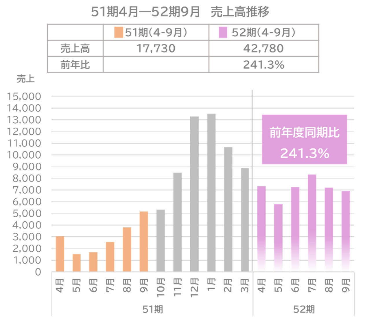 京都きもの友禅は、自社サイトを始めとする、楽天市場やYahoo!ショッピング店などオンラインストアでのサービスを拡大しています。サービス開始以降、多くのお客様から好評をお寄せいただき、今年度上半期(4~9月)には前年比241%の売上を記録するなど、好調に推移しています。