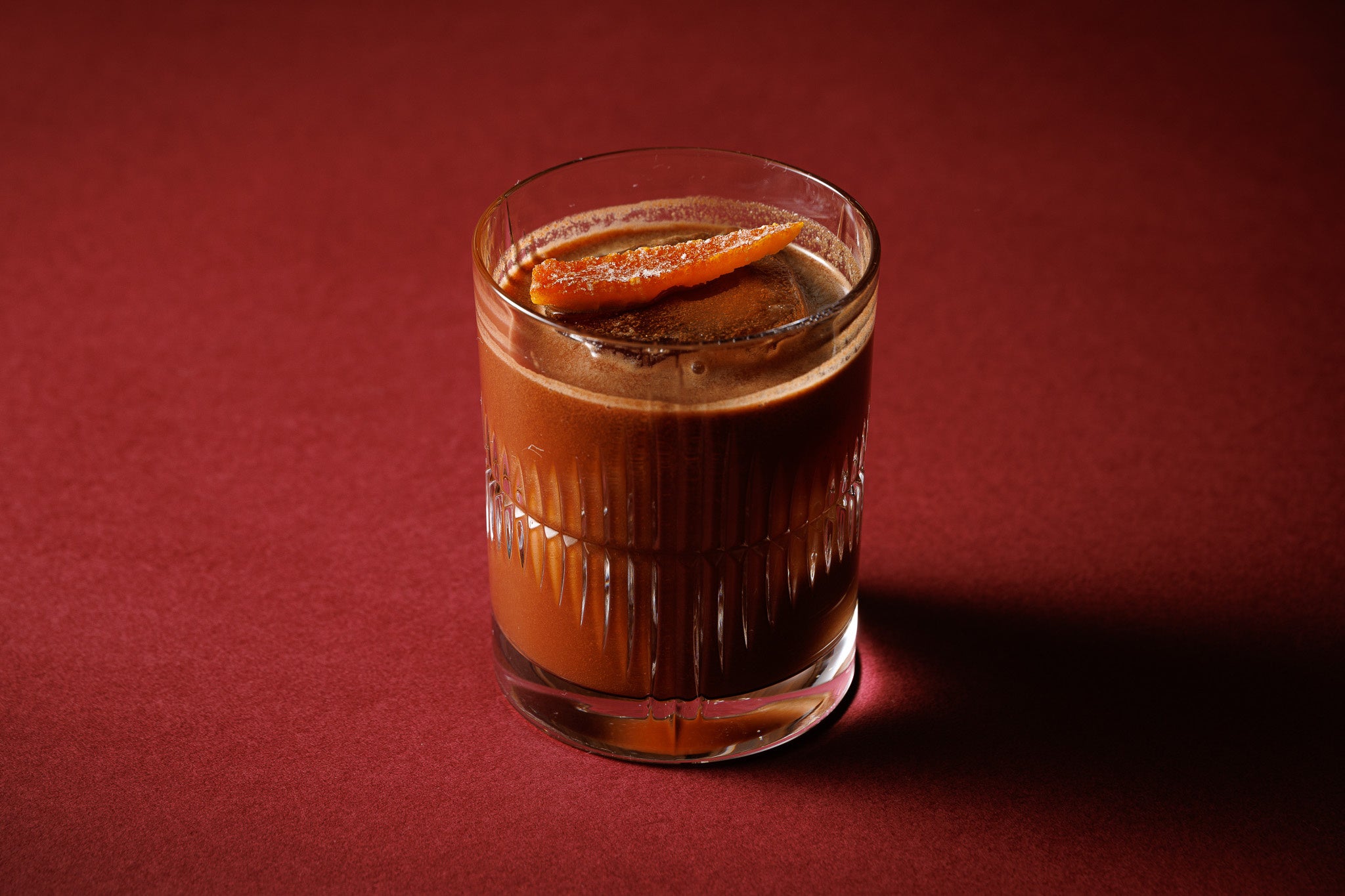 オランジェットを思わせる、バレンタイン限定のチョコレートカクテル。 チョコレートベースリキュールにハーブリキュールを重ね、オレンジジュースと ミルクチョコレートでなめらかに仕上げました。甘さの中に広がる爽やかな酸 味とほのかなビター感が、奥行きのある味わいを演出。仕上げに添えたオレン ジピーと共にお召し上がりください。
