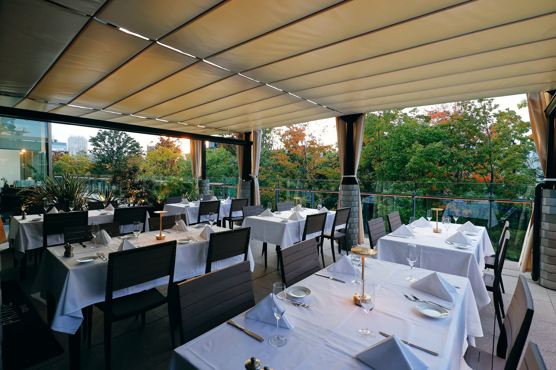 ペット同伴可のテラス席は四季折々の自然あふれる緑地を眺めながら、優雅な時間をお楽しみいただけます。ランチからディナーまで終日営業をしており、様々なシーンでご利用いただけます。