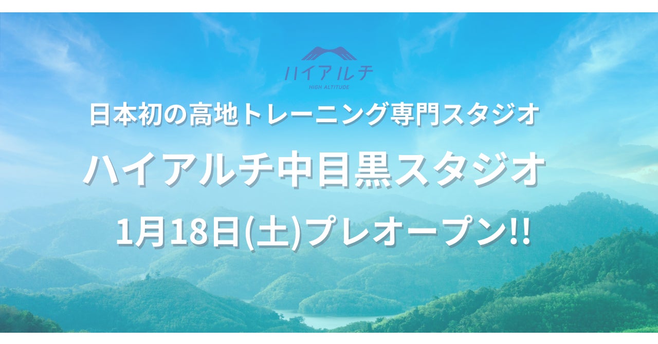 2025年2月1日(木)、High Altitude Management株式会社(本社:東京都中央区、代表取締役:坪井玲奈)が運営する、日本初*の高地トレーニング専門スタジオ「ハイアルチ中目黒スタジオ」がグランドオープンします。これに先立ち、1月18日(木)からプレオープンを開始します。目黒区で初のスタジオとなる本施設は、中目黒周辺に住む洗練されたライフスタイルを求める方々に、新しいフィットネス体験を提供します。