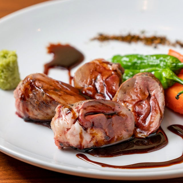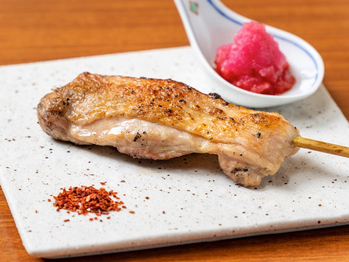 1羽から4本しか取れない、希少な極上もも肉。銀座で食べたら1本1000円を超える高級希少部位です。脂ののった新鮮な鶏肉、「塩」にも「焼き」にもこだわりぬいた名物料理紅芯大根おろしポン酢とともにどうぞ。