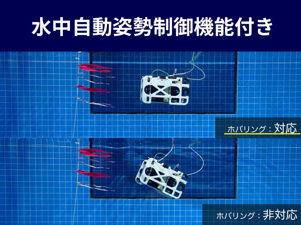 水中自動姿勢制御による操作サポート機能の充実:大型ROVでも困難と言われる、水流下での姿勢制御で捜索の再現性を向上