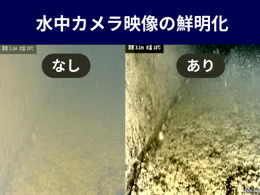 リアルタイム映像処理で、濁度環境でのカメラ撮影:映像鮮明化装置をセットすることで、現地で目視確認をサポート