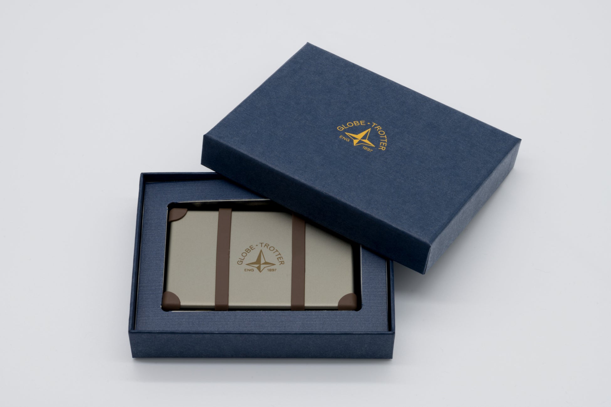 グローブ・トロッターの象徴的なデザインを形どったカードケースは、2025年のホリデーシーズンを盛り上げるノーブルブラウンカラー。コーナーやストラップ、開閉部のロックなど、細部まで再現した限定のカードケースとなります。