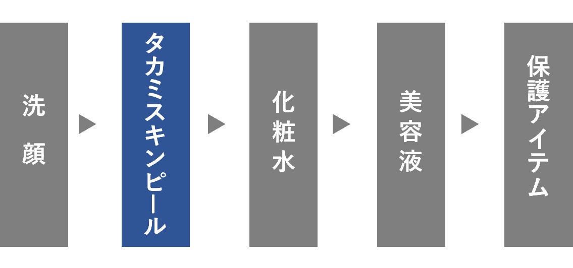 代表製品「タカミスキンピール」は、“美肌の鍵”を握る角質力®(※6)に着目した角質美容水。毎日の洗顔後にプラスワンするだけで、年齢や生活環境などにより引き起こされるさまざまな肌悩みにアプローチ。角質を“剥がさない”独自処方で、キメが整い凛とした透明感(※5)のあるツヤ肌を目指します。