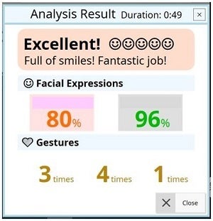 オンラインレッスン終了後すぐに、レッスン内での講師自身の表情、ジェスチャーなどの回数が分かるレポートをPCのモニターに表示します。