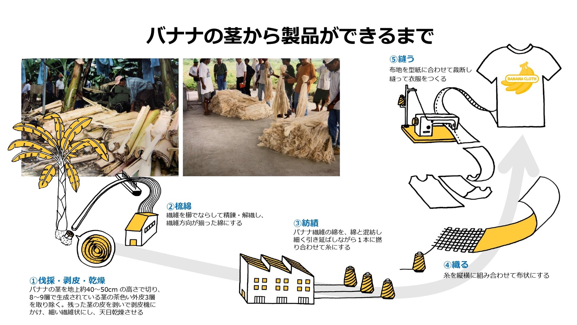 バナナクロスとは、年間10億トンもの量が伐採され、廃棄されるバナナの茎から採取した繊維をアップサイクルして作る生地で、コットン、ウール、リネン、シルクに次ぐ“第5の天然繊維”として注目を集めています。