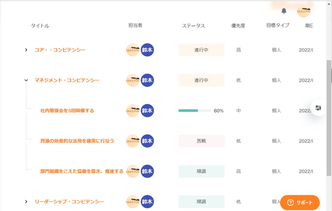 目標は評価時に評価項目としてCo:TEAM(コチーム)での評価シートに自動で反映されるため、別途エクセル等で評価シートを作成する必要はなく、従業員への説明やシートの回収等の手間がなくなります。