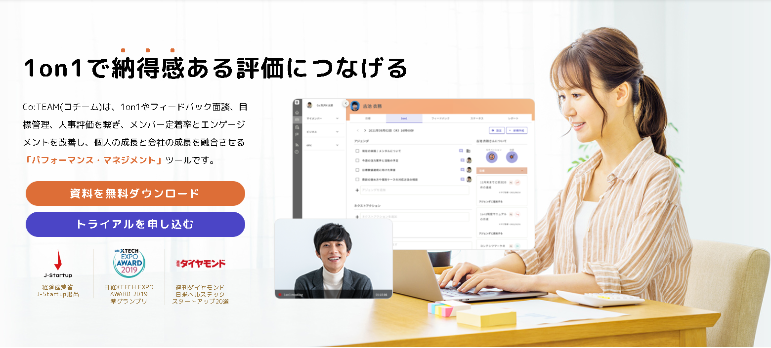 さらに、導入に伴って1on1の質を高める研修・伴走支援、正しい目標設定を行うための伴走支援、1on1・目標管理より収集した情報を最大限活用するための人事評価制度の構築支援などの人的サービスも並行して利用可能です。(サービスサイトURL:https://coteam.jp/)