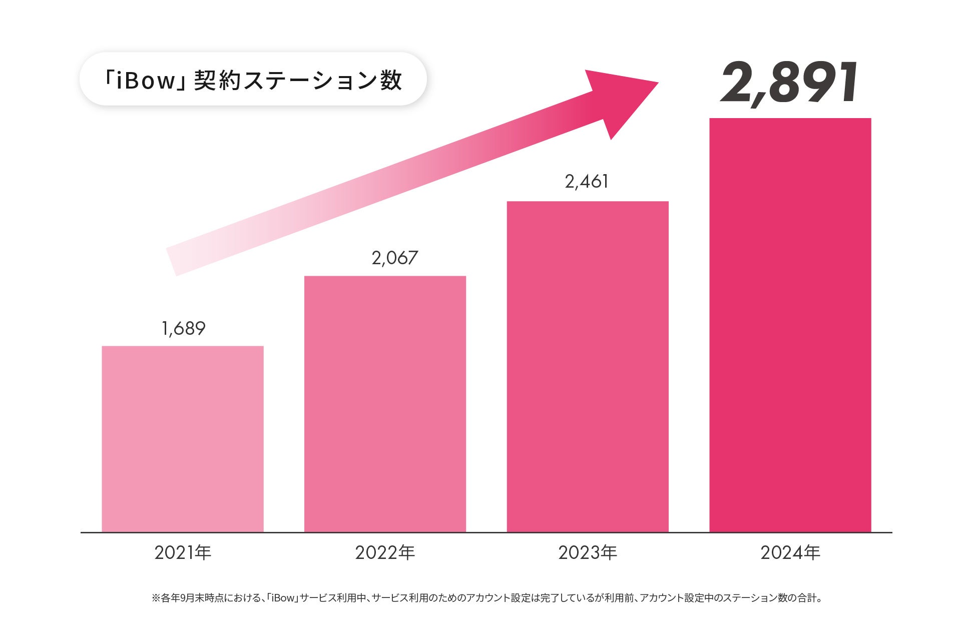 「iBow」は47都道府県で利用されており、契約ステーション数は2,891件、全国シェアは16.7%(※4)です。