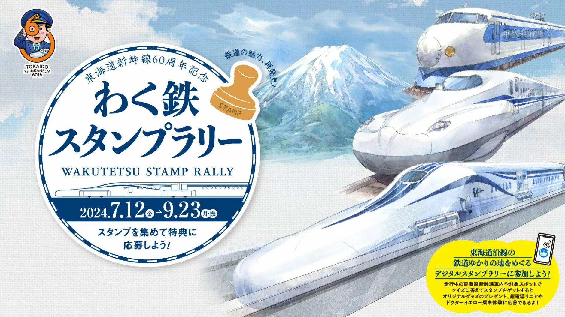 東海旅客鉄道株式会社(以下、JR東海)は、東海道新幹線開業60周年を記念して、鉄道ゆかりのスポットを巡って、東海道新幹線や沿線地域を楽しみながら学ぶことができるデジタルスタンプラリー「わく鉄スタンプラリー」を2024年7月12日(金)~9月23日(月)の期間で実施します。