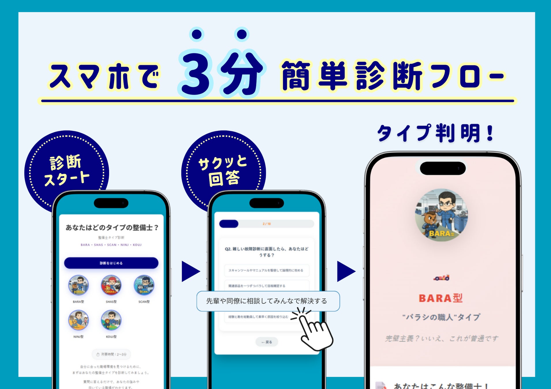 業界初(※)「整備士タイプ診断」開始! わずか10問で「自分がわかる」思考傾向や職場選びのアドバイスも