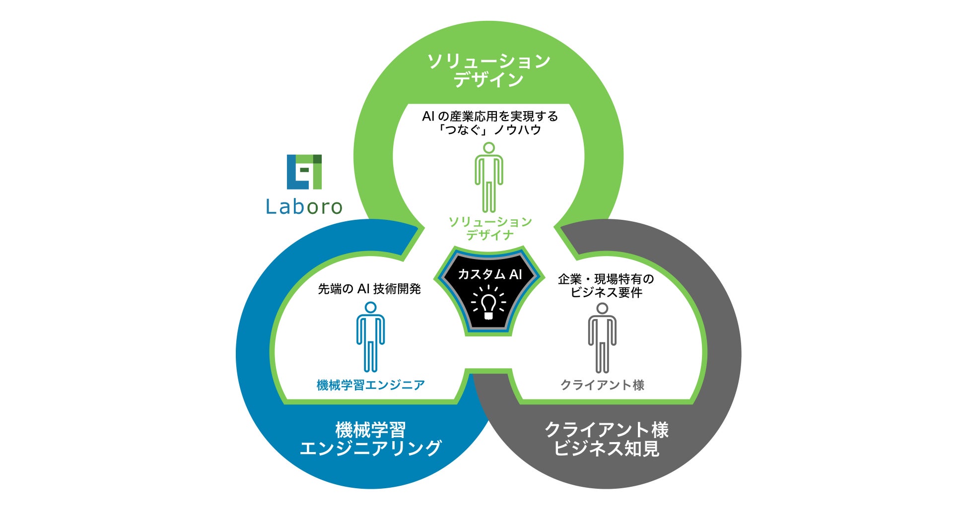 株式会社Laboro.AIは、オーダーメイドのAIソリューション『カスタムAI』の開発・提供を事業とし、アカデミア(学術分野)で研究される先端のAI・機械学習技術をビジネスへとつなぎ届け、すべての産業の新たな姿をつくることをミッションに掲げています。業界に隔たりなく様々な企業のコアビジネスの改革を支援しており、その専門性から支持を得る国内有数のAIスペシャリスト集団です。