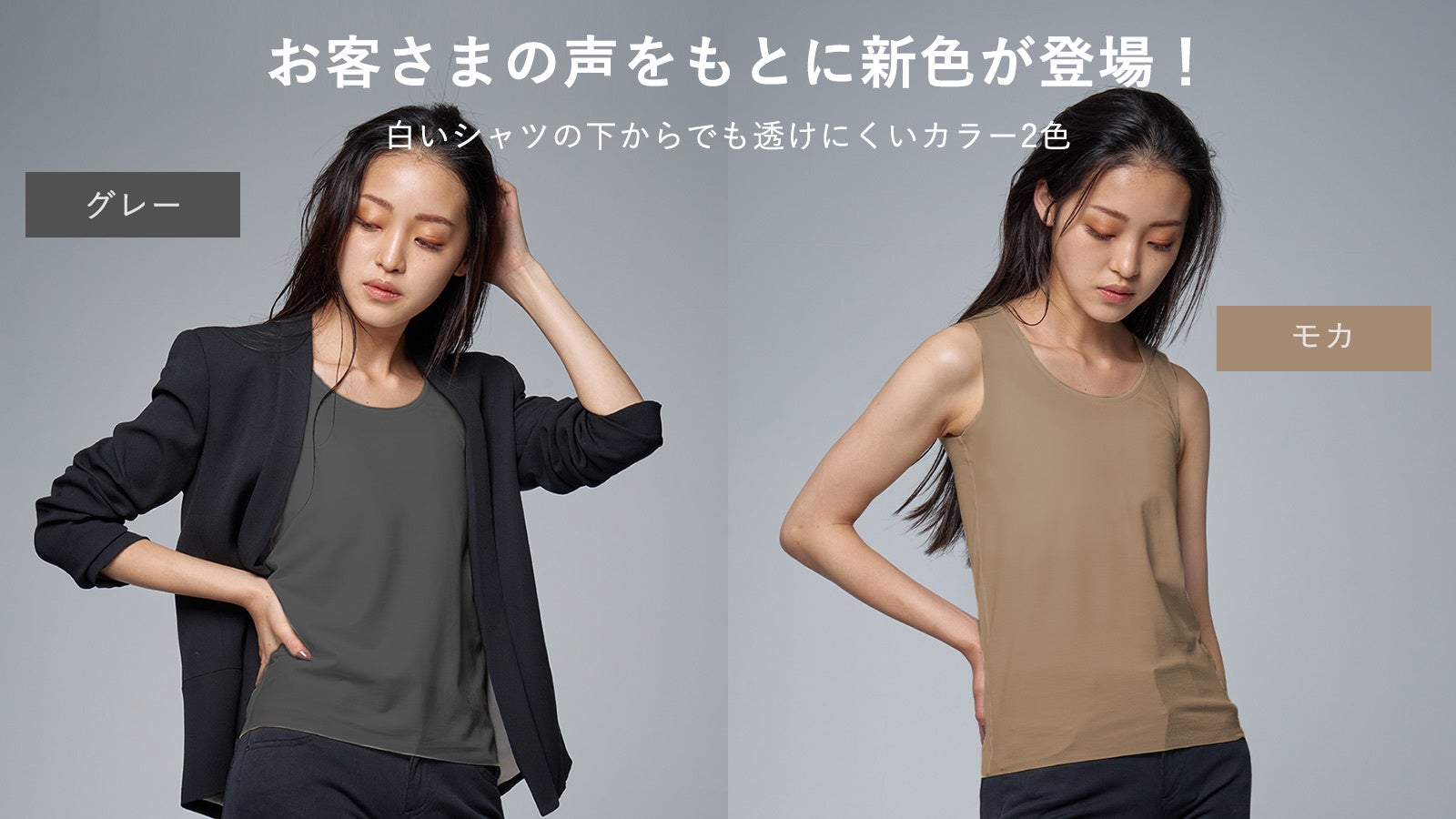 お客さまの声をもとに白シャツの下でも“透けない”新色グレー・モカが登場!