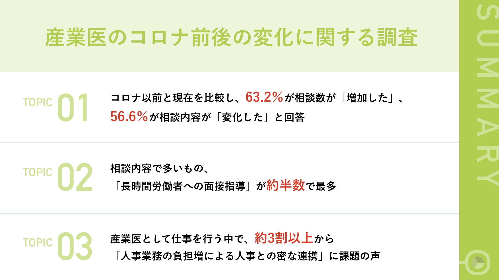 【産業医106人に聞く、相談数や内容のコロナ前後の違いに関する調査】産業医の6割超が相談件数の増加を実感し、感染予防対策やストレスマネージメントなどが求められる