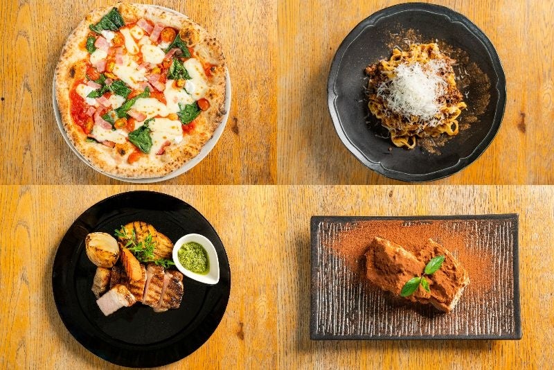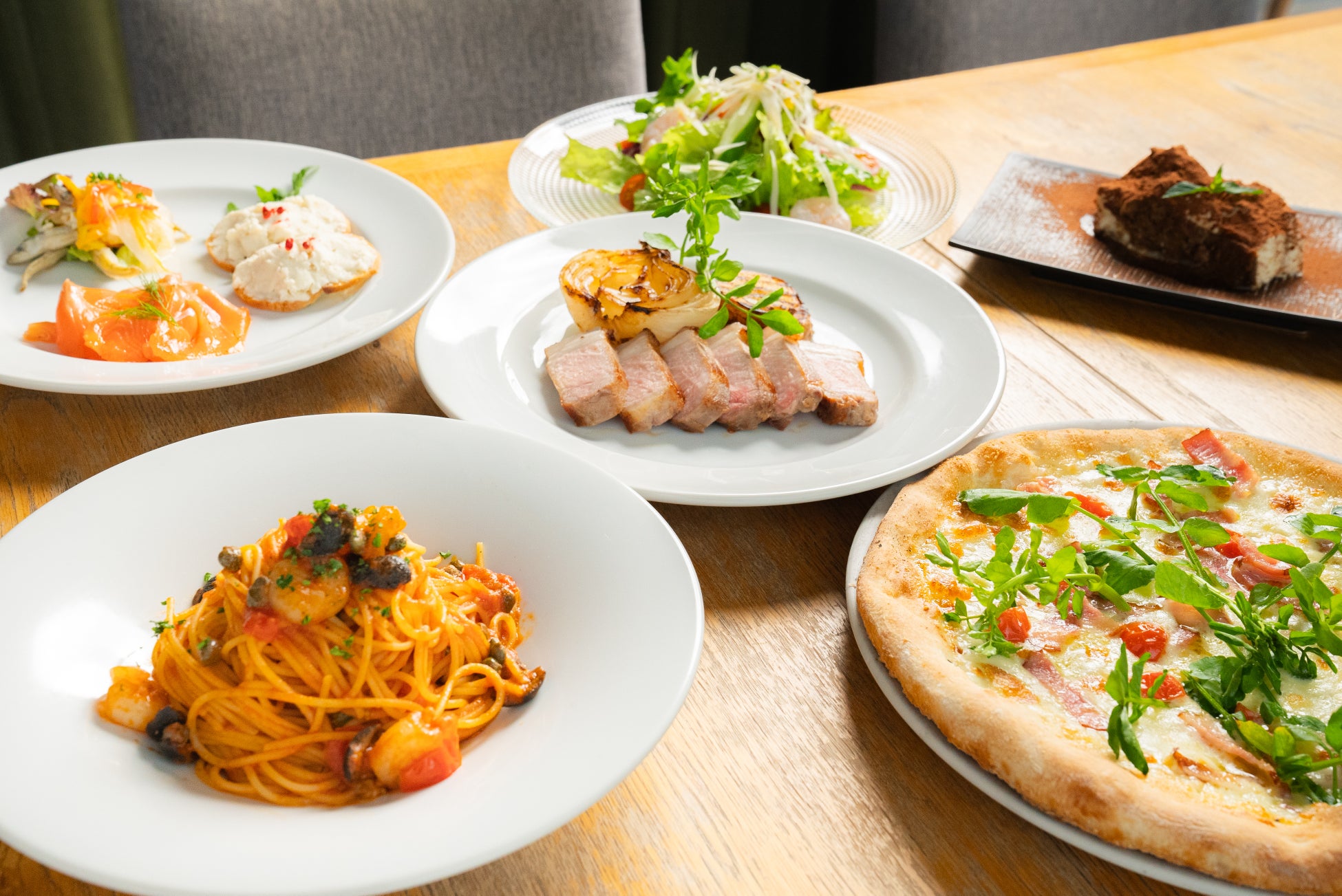 ランチメニューは、プリフィックススタイルをベースに、シーンに合わせてコースをチョイスでき、多彩なメニューを組み合わせてお楽しみいただけます。ディナーは、沖縄県産食材を使用したアラカルトに加え記念日などにぴったりのコース料理をご用意しています。生地にこだわったナポリピッツァや、一部生パスタを使用した各種パスタなど、ベーシックなイタリア料理はもちろん、これまでの熟成肉ステーキハウスの系譜を継ぐ「熟成肉のタリアータ」など、メイン料理・アラカルトともに充実の内容です。