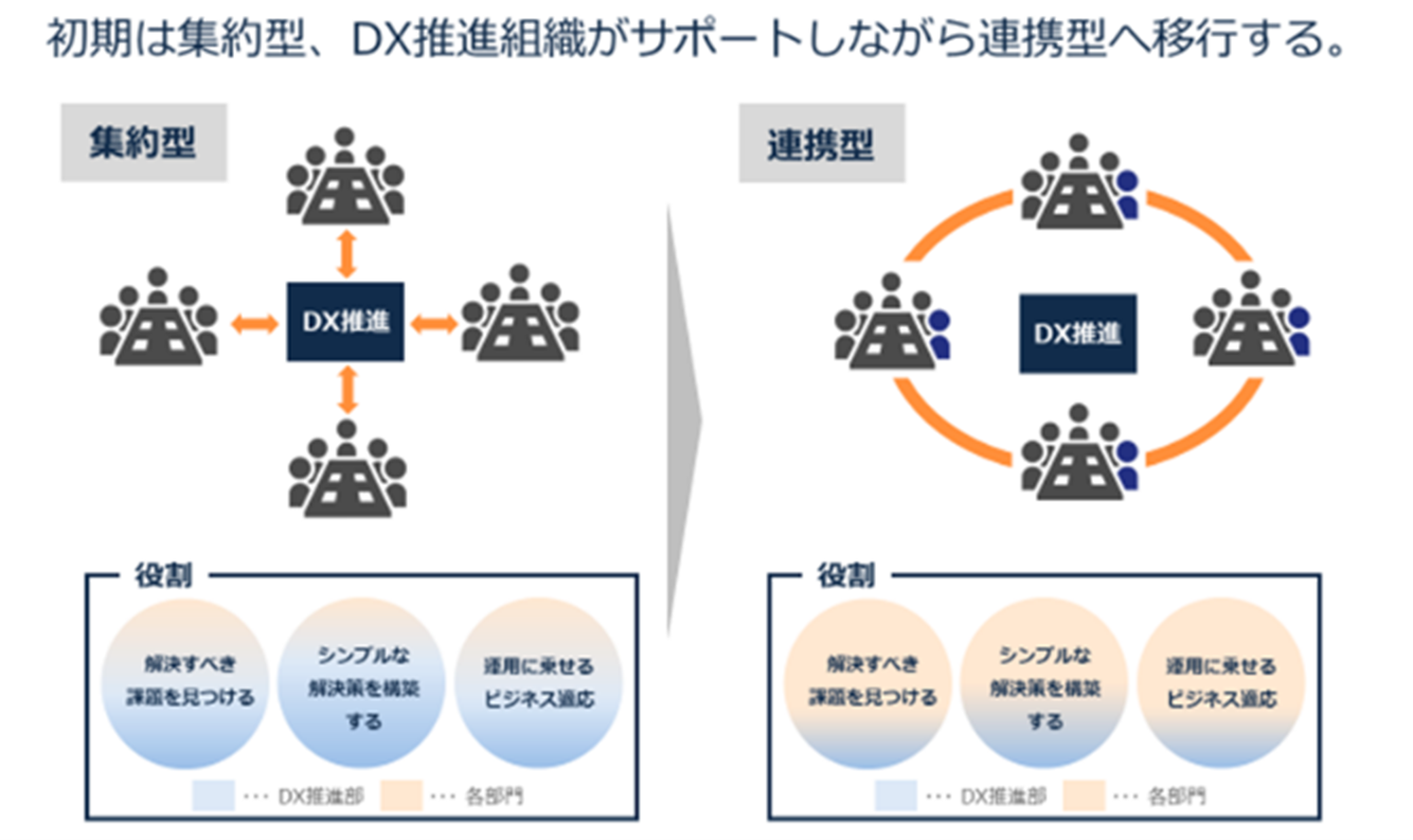 こうした企業が、競争力を強化し製薬業界で勝ち残っていくためには、部門ごとのIT化や当面のシステム導入で完結してしまう戦略立案にとどまらず、(1)初期に従業員意識を集約統合したうえで、急速に変化していく需要や市場動向にもスピーディかつ柔軟に呼応できるようにし、(2)全社で一貫したビジネス戦略、ポリシーやこれを実現するツールを導入し、(3)全社連携してこれを常時継続的に洗練させていくことのできるような社内DX体制の確立とデータ活用環境整備を早期に実現することが、求められます。