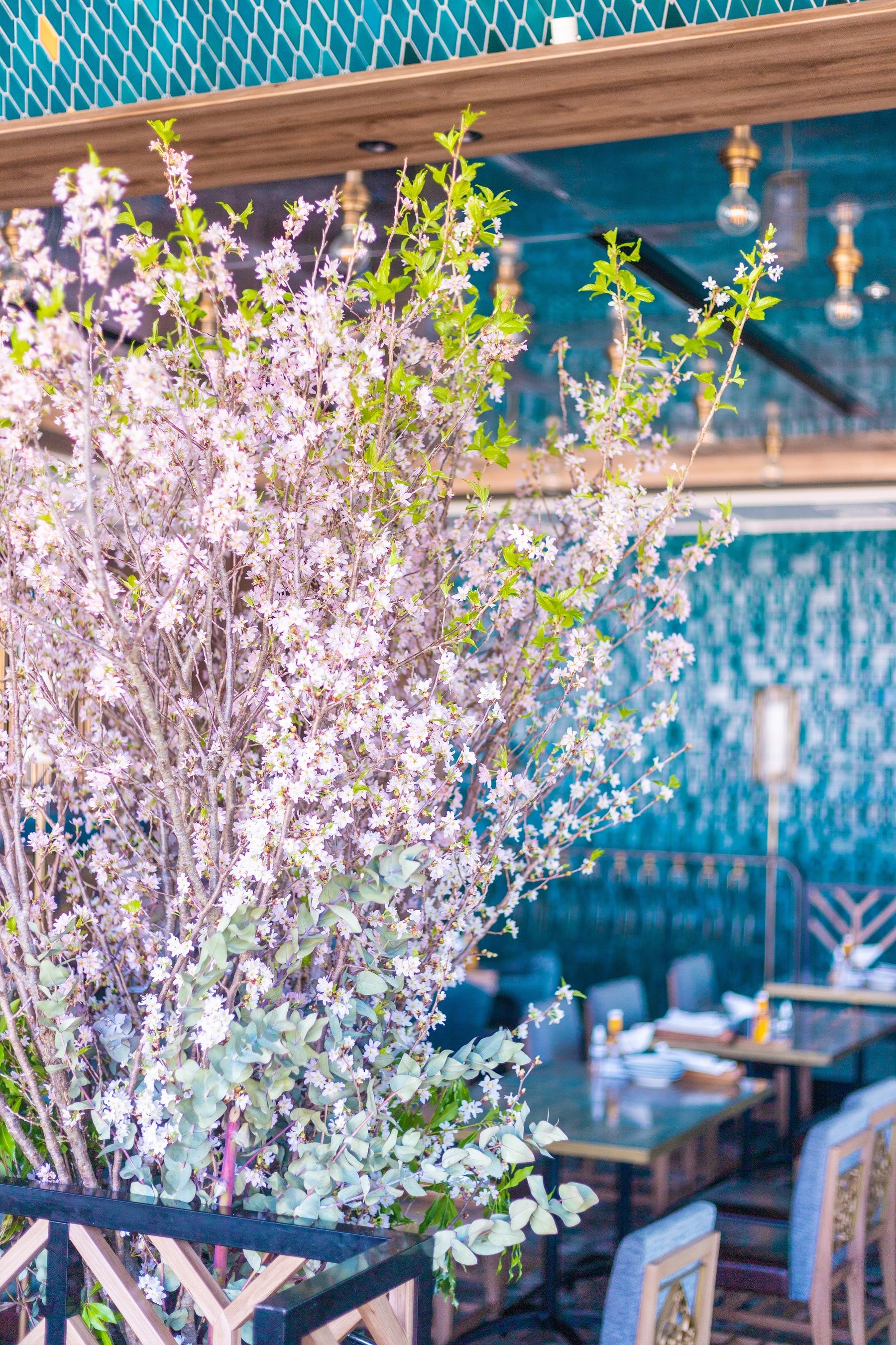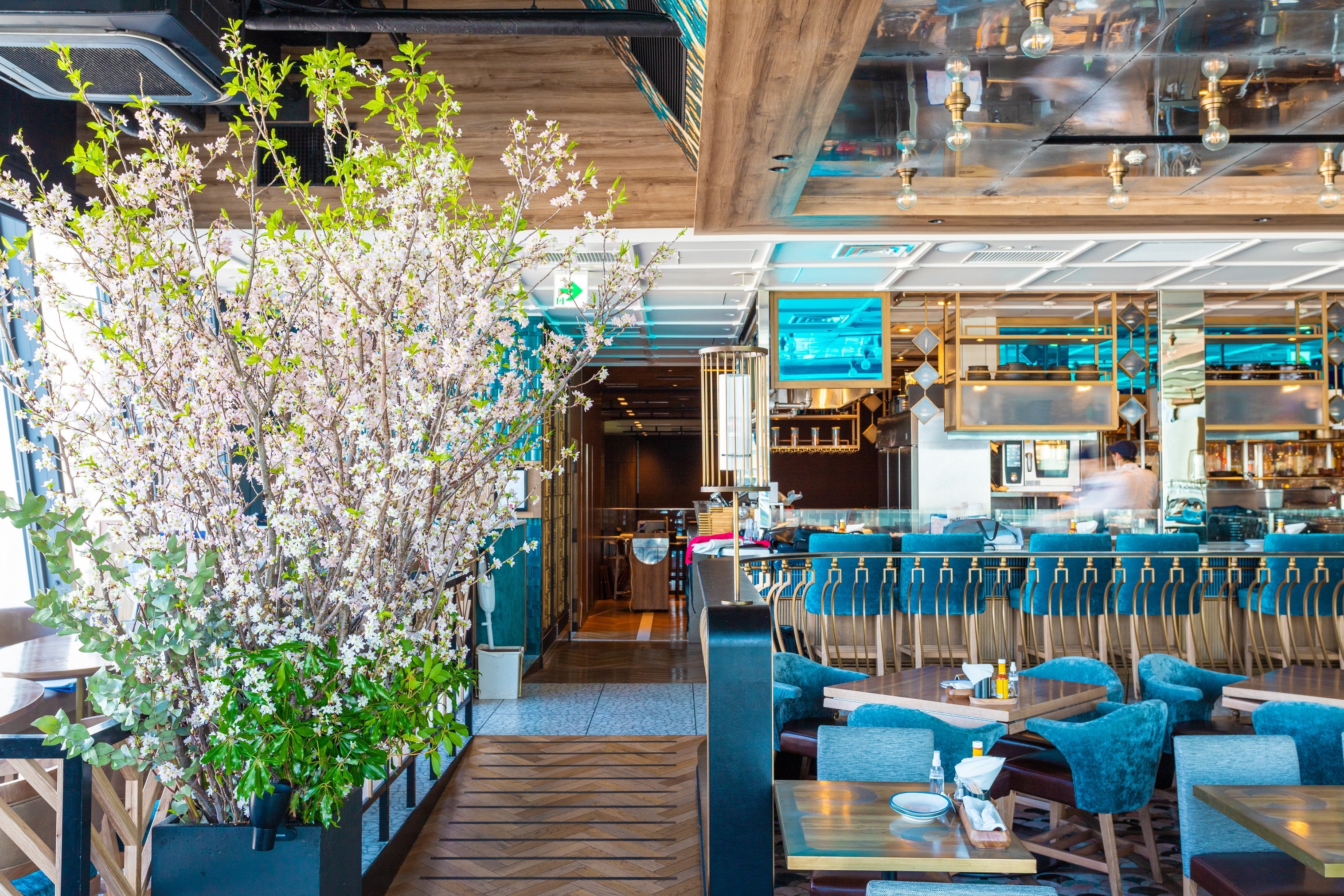 HUGEが運営するレストラン14店舗では、寒い時期から華を添える啓翁桜を皮切りに、開花し始める桜を随時飾り付け、より一層華やかな春らしい雰囲気の中、お食事をお楽しみいただけます。