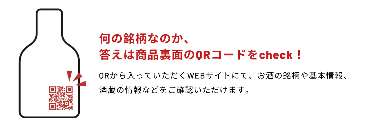 日本酒には銘柄情報が記載されておらず、裏面にある二次元コードをスマートフォンで読み込むことで、日本酒の情報や、同じお酒を飲んだ全国ユーザーの感想アンケートなど、いろいろな情報を見ることができます。