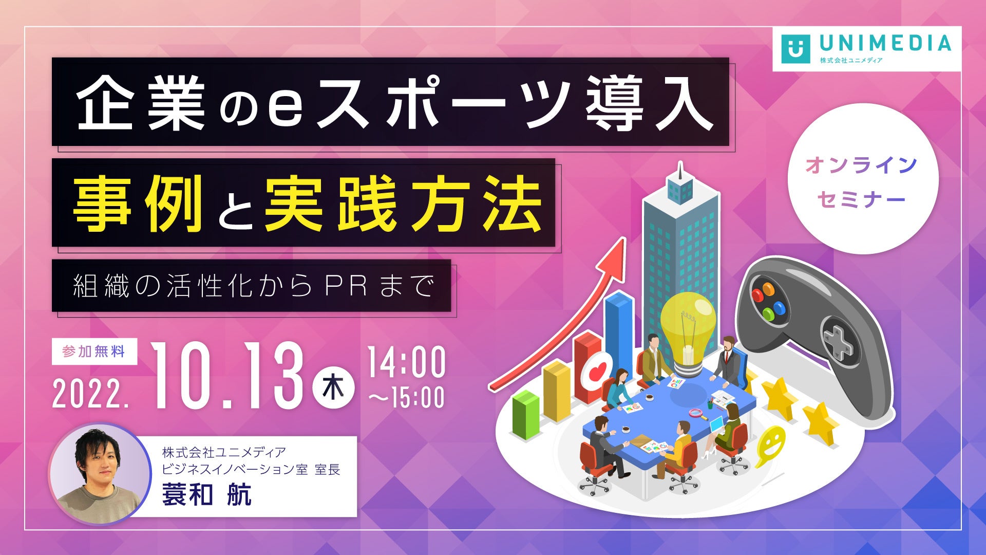 【10/13(木) 14時開催】「企業のeスポーツ導入 事例と実践方法 〜組織の活性化からPRまで〜」無料オンラインセミナー開催!