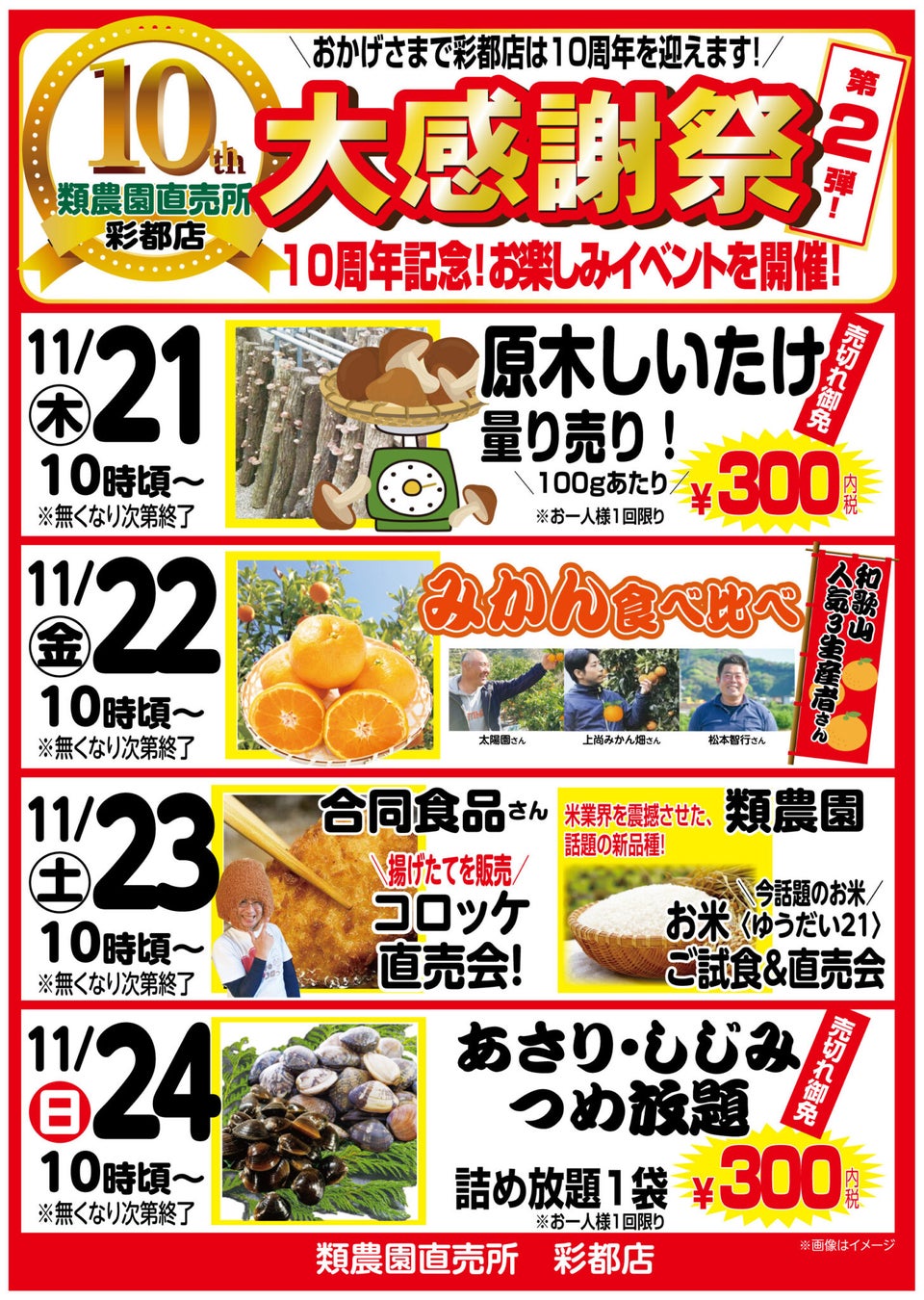 類農園彩都店開業10周年記念 大感謝祭イベント第2弾の概要