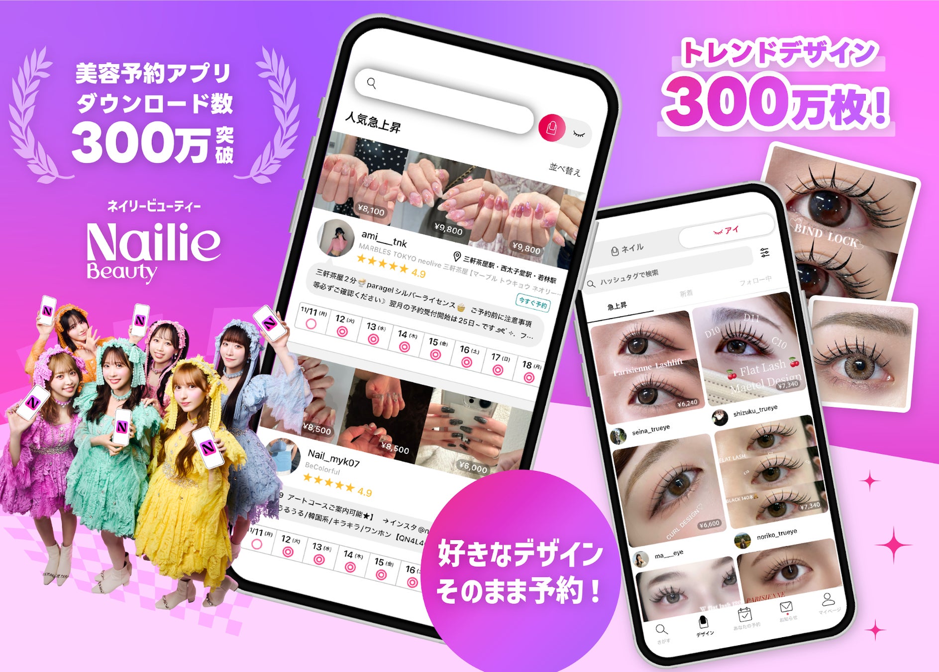 Nailie Beauty(ネイリービューティー)は、累計アプリダウンロード数300万を突破し、首都圏を中心に全国の美容師・ネイリスト・アイリスト4万人以上が登録する美容予約アプリです。