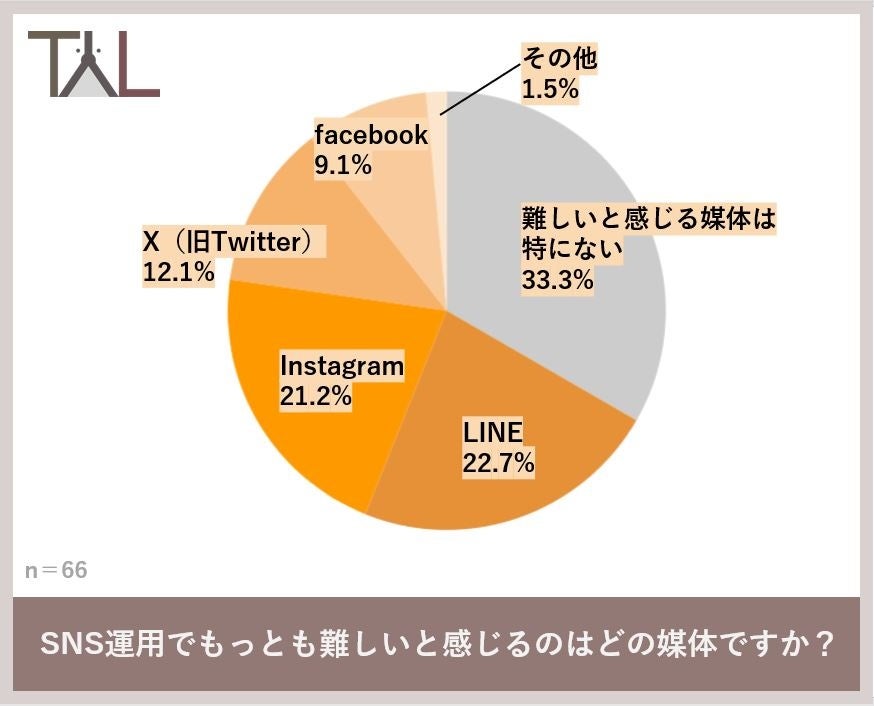 動物病院の院長66名に対し、「集客(集患)において、どの部分に課題があると感じますか?(複数回答可)」と質問したところ、1位「新規顧客の取り込み」、2位「既存顧客のリピート率」、3位「SNS運用」という結果になりました。動物病院の院長66名に対し、「SNS運用でもっとも難しいと感じるのはどの媒体ですか?」と質問したところ、1位「LINE」、2位「Instagram」、3位「X(旧Twitter)」という結果になりました。