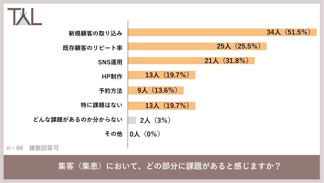 ペットの家族化推進をミッションとし、ペット医療DXをおこなう急成長ベンチャー企業の株式会社TYL(本社:東京都港区 代表取締役社長:金児 将平、以下TYL)は、全国の動物病院の院長66名に対し、「集患における課題」(※1)についてアンケート調査をおこないました。