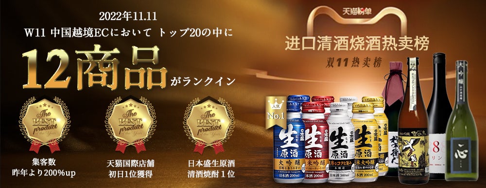 また、上記天猫国際の清酒焼酎商品ランキング1位を獲得した日本盛生原酒について、天猫・JD全体で初日販売本数昨対比130%超えを記録。(※2021年初日(24時間)と2022年初日(4時間)の販売本数比較による。)さらに、W11期間全体の日本盛販売本数は16,000本を突破し、販売本数昨対比約150%を達成。