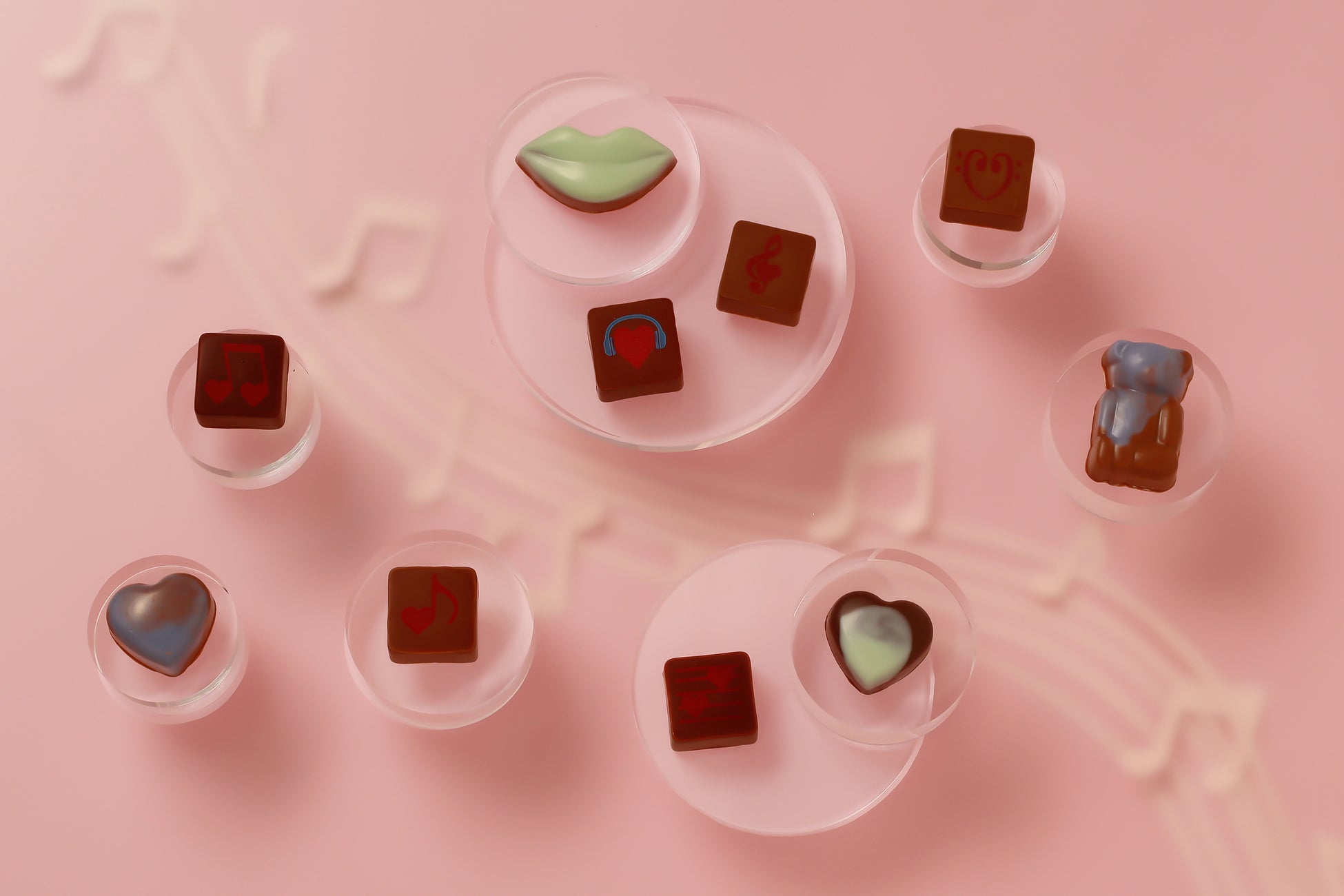 シャンソンの古典曲をモチーフにした限定BOX。愛を奏でるようなハートと音符をデザインした限定ボンボンショコラが入っています。